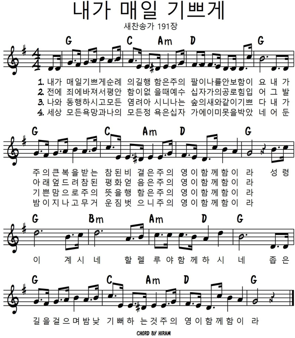 3. 내가 매일 기쁘게 새찬송가191 (G / 빠르게)