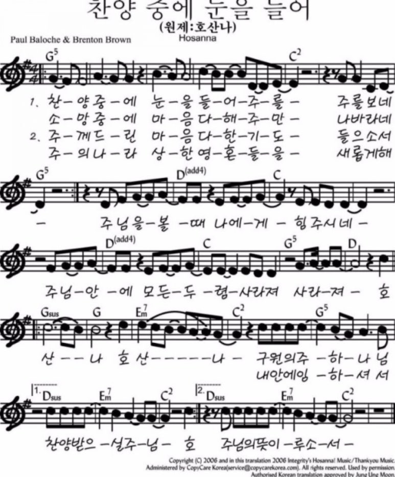 2. 찬양 중에 눈을 들어 (빠르게, G)