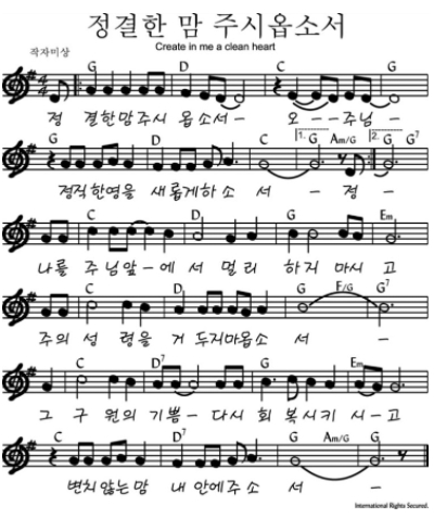 1. 정결한 맘 주시옵소서(느리게, G)