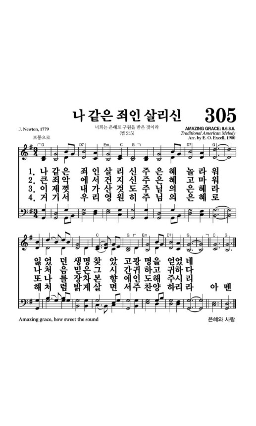 4. 나 같은 죄인 살리신 (느리게, G)