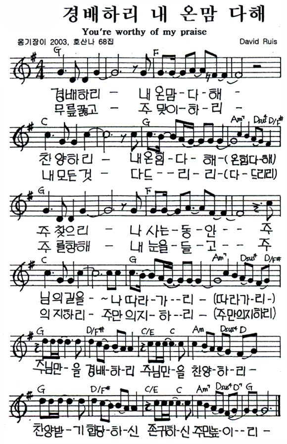 1. 경배하리 내 온 맘 다해 G